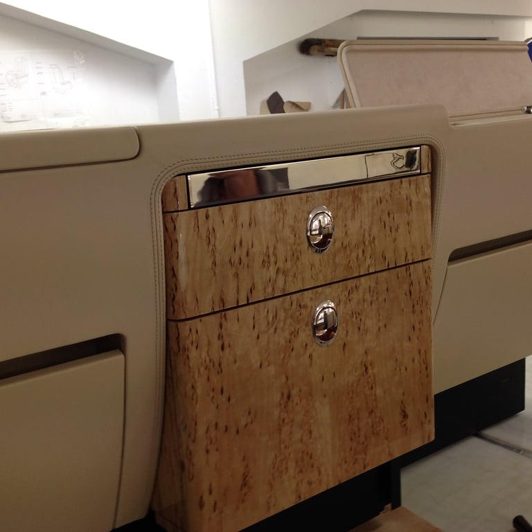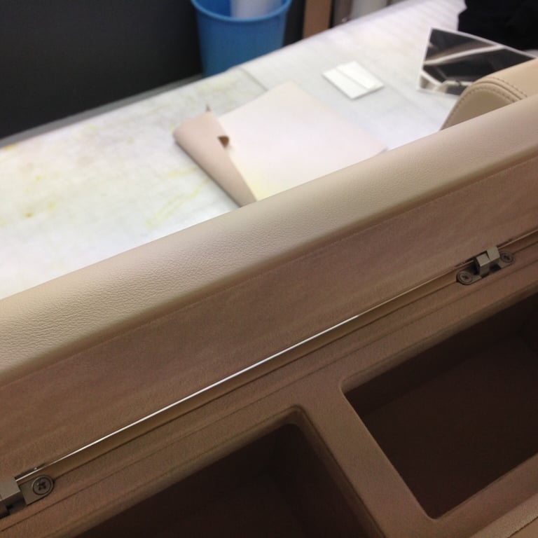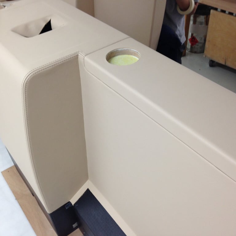 Gainage intégrale d'une console d'hélicopter V.I.P Type Alcantara, Cuir