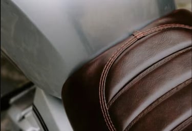 Je crée des selles de moto sur-mesure alliant confort, style et performance. Chaque selle est fabriquée avec des matériaux de haute qualité, pensés pour offrir une expérience de conduite optimale tout en apportant une touche unique à votre moto.
